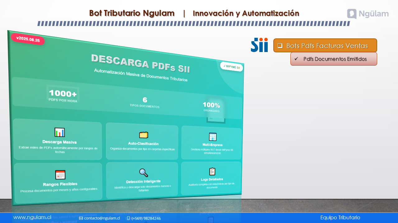 Emite y descarga documentos tributarios masivamente desde el SII de forma rápida y organizada.